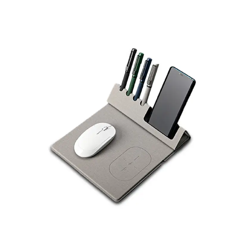 10W Fast Charging Wireless Mouse Pad with Bamboo Desktop Organizer