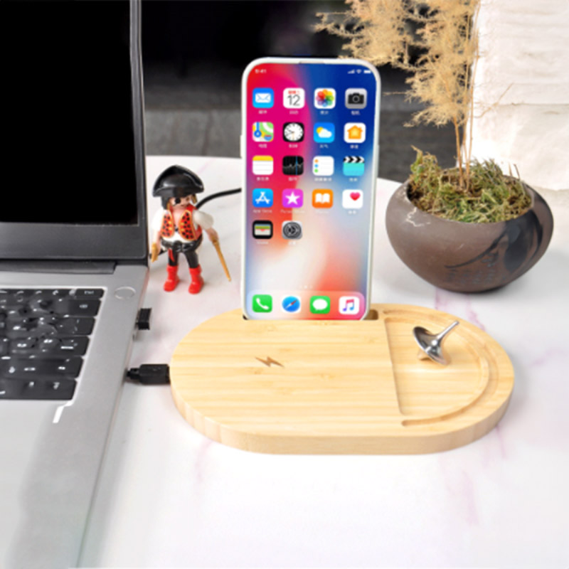 ANTI-STRESS WIRELESS – Bamboo Wireless Desktop Spinner with 15W Charging Capability