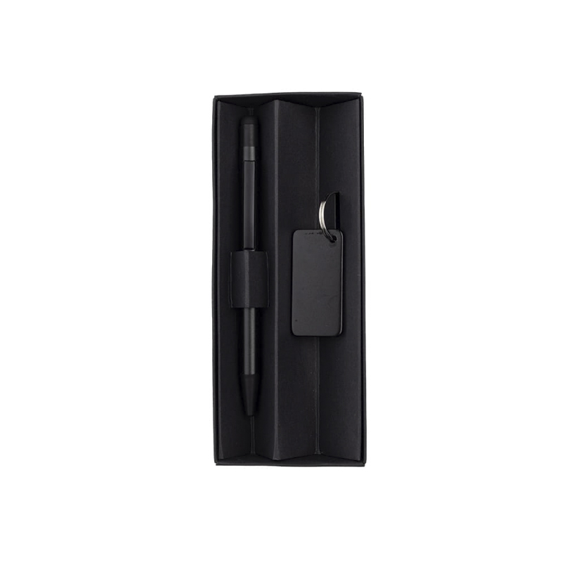 The sleek pen offers smooth writing comfort, perfect for daily use in boardrooms, client meetings, or personal planning. Paired with a matching recycled aluminium keychain, it creates a cohesive accessory set that balances practicality with a premium finish.
