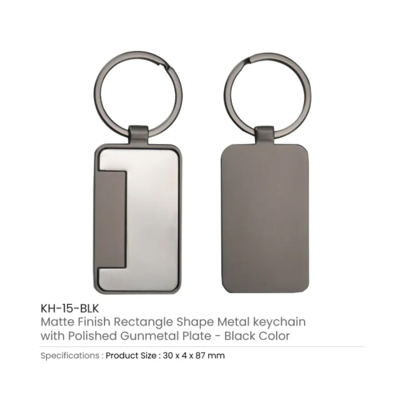 Metal Keychain Rectangle Gun Metal Matte Finish Plate