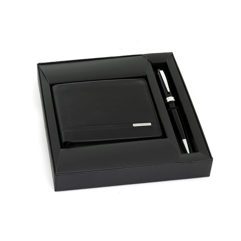A gift of distinction, the Slim Wallet in classic black paired with the Bailey Luxury Pen in matching black finish creates a sophisticated set designed for professionals who value style and function. The slim wallet is crafted with a sleek profile that fits comfortably into any pocket while offering secure space for cards and cash. Its modern minimalism reflects the confidence and precision expected in today’s business world. Complementing it is the Bailey Luxury Pen, with its refined silhouette, smooth ink flow, and premium build that makes every signature an effortless statement. Together, they form a premium corporate gift, perfectly suited for executive meetings, client appreciation, and professional milestones in Dubai and across the UAE. This set communicates professionalism, refined taste, and a commitment to lasting impressions—making it a preferred choice for meaningful gifting.